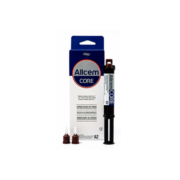 Allcem Core est un ciment dual à base de résine, indiqué pour la reconstitution coronaire (noyau / tourillon), le scellement adhésif des tenons intraradiculaires et la cimentation des couronnes prothétiques.