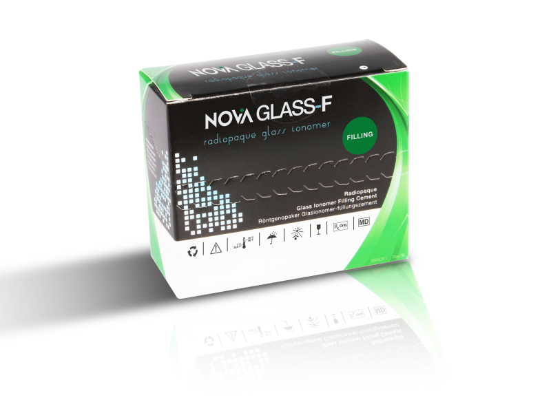Nova Glass F est un ciment de remplissage en ionomère de verre radio-opaque.