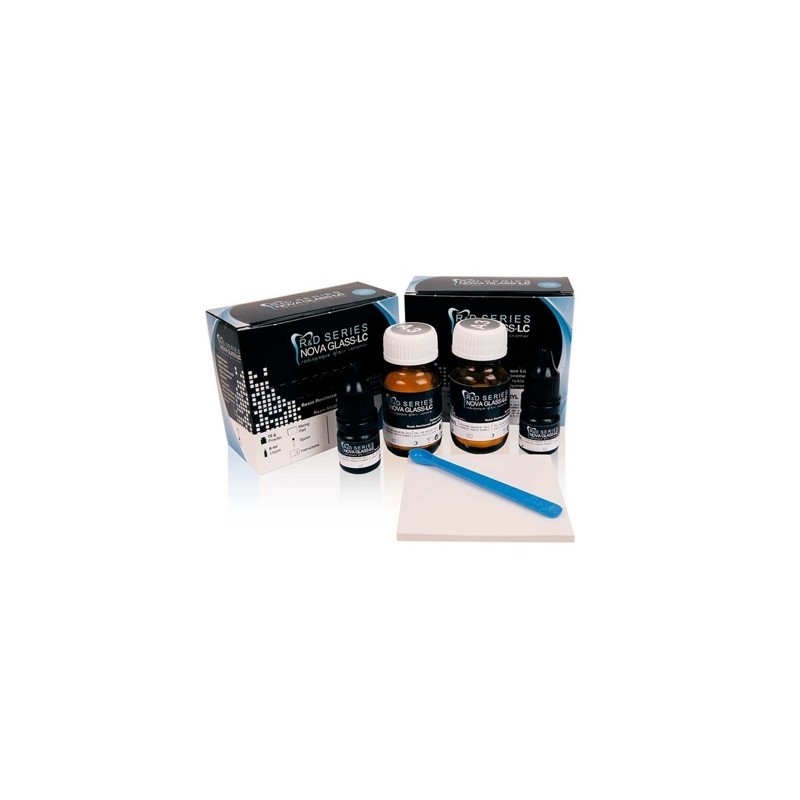 Nova Glass LC est un ciment verre ionomère radio-opaque, photopolymérisable, libérant du fluor, modifié à la résine et auto-adhésif.